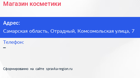 Магазин косметики по адресу Самарская область, Отрадный, Комсомольская улица, 7 в дальнейшем Организация, размещена в следующих категориях: