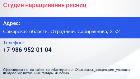 Студия наращивания ресниц по адресу Самарская область, Отрадный, Сабирзянова, 3 к2 в дальнейшем Организация, размещена в следующих категориях: