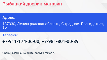 Рыбацкий дворик, магазин по адресу 187330, Ленинградская область, Отрадное, Благодатная, 1Б в дальнейшем Организация, размещена в следующих категориях: