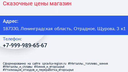 Сказочные цены, магазин по адресу 187330, Ленинградская область, Отрадное, Щурова, 3 к1 в дальнейшем Организация, размещена в следующих категориях: