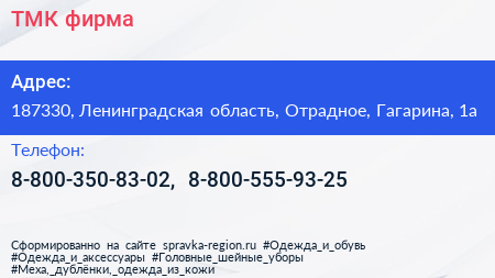 ТМК, фирма по адресу 187330, Ленинградская область, Отрадное, Гагарина, 1а в дальнейшем Организация, размещена в следующих категориях: