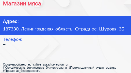Магазин мяса по адресу 187330, Ленинградская область, Отрадное, Щурова, 3Б в дальнейшем Организация, размещена в следующих категориях: