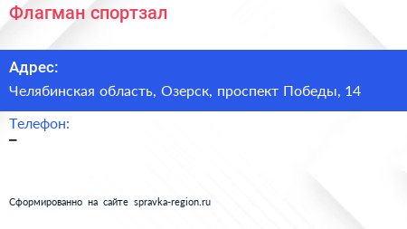 Флагман, спортзал по адресу Челябинская область, Озерск, проспект Победы, 14 в дальнейшем Организация, размещена в следующих категориях:
