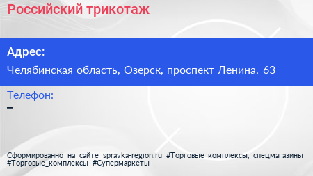 Российский трикотаж по адресу Челябинская область, Озерск, проспект Ленина, 63 в дальнейшем Организация, размещена в следующих категориях: