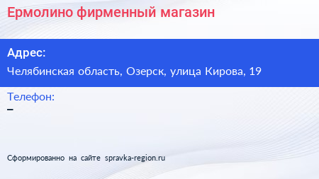 Ермолино, фирменный магазин по адресу Челябинская область, Озерск, улица Кирова, 19 в дальнейшем Организация, размещена в следующих категориях: