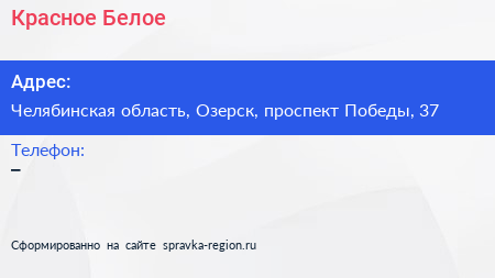 Красное & Белое по адресу Челябинская область, Озерск, проспект Победы, 37 в дальнейшем Организация, размещена в следующих категориях: