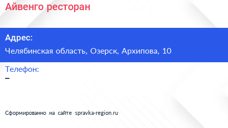 Айвенго, ресторан по адресу Челябинская область, Озерск, Архипова, 10 в дальнейшем Организация, размещена в следующих категориях: