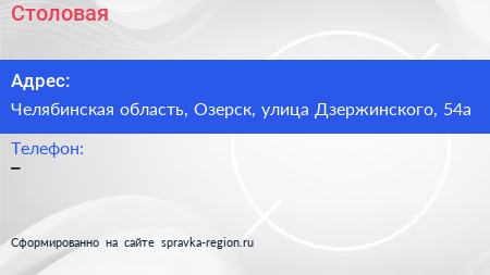 Столовая по адресу Челябинская область, Озерск, улица Дзержинского, 54а в дальнейшем Организация, размещена в следующих категориях: