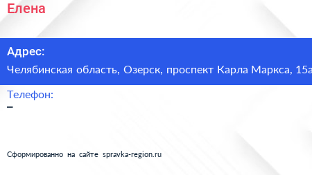 Елена по адресу Челябинская область, Озерск, проспект Карла Маркса, 15а в дальнейшем Организация, размещена в следующих категориях: