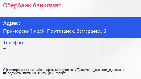 Сбербанк, банкомат по адресу Приморский край, Партизанск, Замараева, 3 в дальнейшем Организация, размещена в следующих категориях: