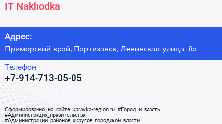 IT-Nakhodka по адресу Приморский край, Партизанск, Ленинская улица, 8а в дальнейшем Организация, размещена в следующих категориях: