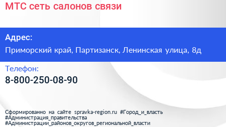 МТС, сеть салонов связи по адресу Приморский край, Партизанск, Ленинская улица, 8д в дальнейшем Организация, размещена в следующих категориях: