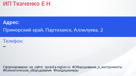 ИП Ткаченко Е.Н. по адресу Приморский край, Партизанск, Аллилуева, 2 в дальнейшем Организация, размещена в следующих категориях: