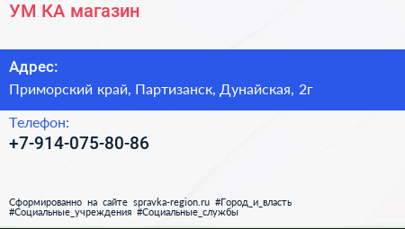 УМ-КА, магазин по адресу Приморский край, Партизанск, Дунайская, 2г в дальнейшем Организация, размещена в следующих категориях: