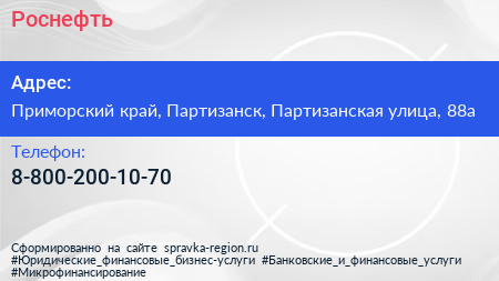 Роснефть по адресу Приморский край, Партизанск, Партизанская улица, 88а в дальнейшем Организация, размещена в следующих категориях: