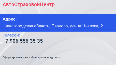 АвтоСтраховойЦентр по адресу Нижегородская область, Павлово, улица Чкалова, 2 в дальнейшем Организация, размещена в следующих категориях: