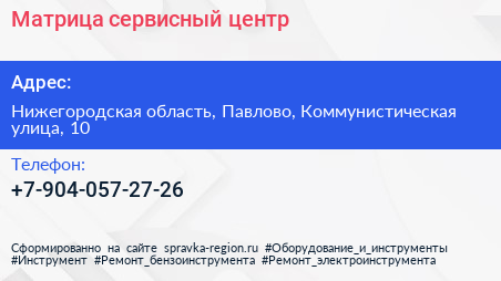 Матрица, сервисный центр по адресу Нижегородская область, Павлово, Коммунистическая улица, 10 в дальнейшем Организация, размещена в следующих категориях: