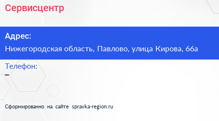 Сервисцентр по адресу Нижегородская область, Павлово, улица Кирова, 66а в дальнейшем Организация, размещена в следующих категориях: