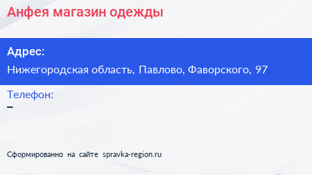 Анфея, магазин одежды по адресу Нижегородская область, Павлово, Фаворского, 97 в дальнейшем Организация, размещена в следующих категориях: