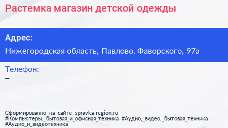 Растемка, магазин детской одежды по адресу Нижегородская область, Павлово, Фаворского, 97а в дальнейшем Организация, размещена в следующих категориях: