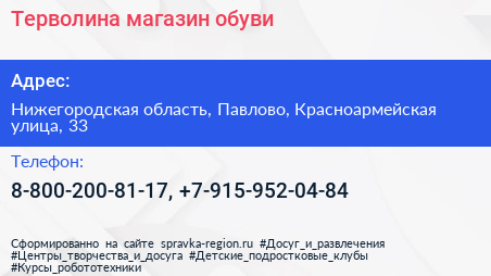Терволина, магазин обуви по адресу Нижегородская область, Павлово, Красноармейская улица, 33 в дальнейшем Организация, размещена в следующих категориях: