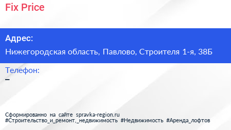Fix Price по адресу Нижегородская область, Павлово, Строителя 1-я, 38Б в дальнейшем Организация, размещена в следующих категориях: