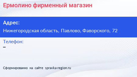Ермолино, фирменный магазин по адресу Нижегородская область, Павлово, Фаворского, 72 в дальнейшем Организация, размещена в следующих категориях: