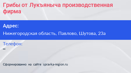 Грибы от Лукъяныча, производственная фирма по адресу Нижегородская область, Павлово, Шутова, 23а в дальнейшем Организация, размещена в следующих категориях: