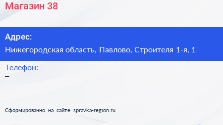Магазин №38 по адресу Нижегородская область, Павлово, Строителя 1-я, 1 в дальнейшем Организация, размещена в следующих категориях: