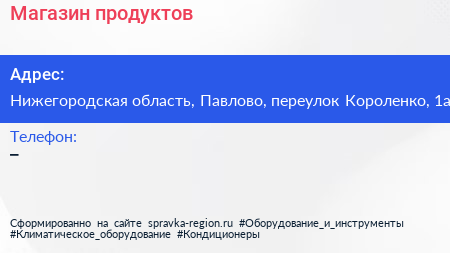 Магазин продуктов по адресу Нижегородская область, Павлово, переулок Короленко, 1а в дальнейшем Организация, размещена в следующих категориях: