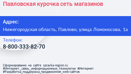 Павловская курочка, сеть магазинов по адресу Нижегородская область, Павлово, улица Ломоносова, 1а в дальнейшем Организация, размещена в следующих категориях: