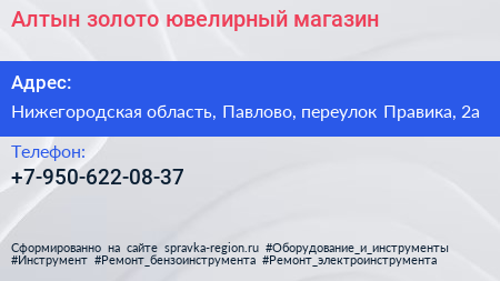 Алтын золото, ювелирный магазин по адресу Нижегородская область, Павлово, переулок Правика, 2а в дальнейшем Организация, размещена в следующих категориях: