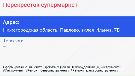 Перекресток, супермаркет по адресу Нижегородская область, Павлово, аллея Ильича, 7Б в дальнейшем Организация, размещена в следующих категориях: