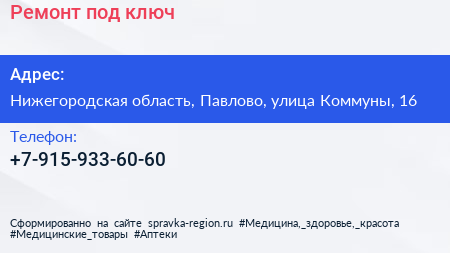 Ремонт под ключ по адресу Нижегородская область, Павлово, улица Коммуны, 16 в дальнейшем Организация, размещена в следующих категориях: