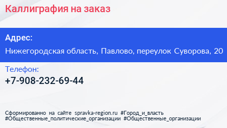 Каллиграфия на заказ по адресу Нижегородская область, Павлово, переулок Суворова, 20 в дальнейшем Организация, размещена в следующих категориях: