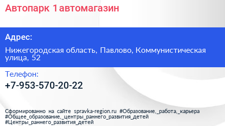 Автопарк-1, автомагазин по адресу Нижегородская область, Павлово, Коммунистическая улица, 52 в дальнейшем Организация, размещена в следующих категориях:
