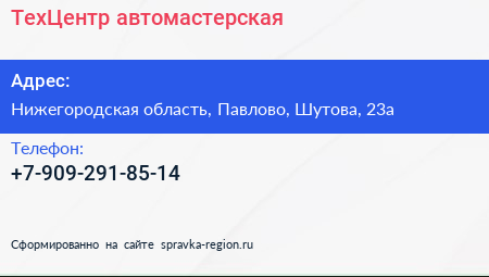 ТехЦентр, автомастерская по адресу Нижегородская область, Павлово, Шутова, 23а в дальнейшем Организация, размещена в следующих категориях: