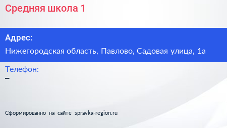 Средняя школа №1 по адресу Нижегородская область, Павлово, Садовая улица, 1а в дальнейшем Организация, размещена в следующих категориях: