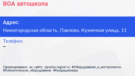 ВОА, автошкола по адресу Нижегородская область, Павлово, Кузнечная улица, 11 в дальнейшем Организация, размещена в следующих категориях: