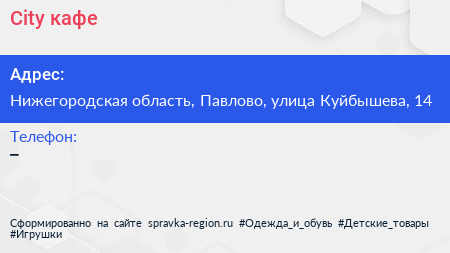 City, кафе по адресу Нижегородская область, Павлово, улица Куйбышева, 14 в дальнейшем Организация, размещена в следующих категориях: