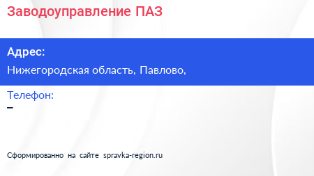 Заводоуправление ПАЗ по адресу Нижегородская область, Павлово, в дальнейшем Организация, размещена в следующих категориях:
