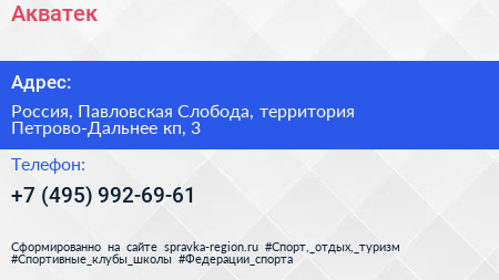 Акватек по адресу 3, 4-я Мечниковская улица, Коттеджный поселок "Петрово-Дальнее", Петрово-Дальнее, городской округ Красногорск, Московская область, Центральный федеральный округ, 143422, Россия в дальнейшем Организация, размещена в следующих категориях: