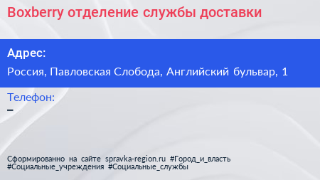 Boxberry, отделение службы доставки по адресу Английский бульвар, Коттеджный посёлок «Кембридж», Красный Посёлок, городской округ Истра, Московская область, Центральный федеральный округ, 143582, Россия в дальнейшем Организация, размещена в следующих категориях: