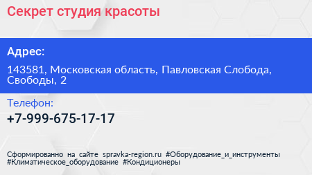 Секрет, студия красоты по адресу 143581, Московская область, Павловская Слобода, Свободы, 2 в дальнейшем Организация, размещена в следующих категориях: