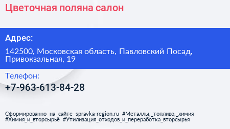Цветочная поляна, салон по адресу 142500, Московская область, Павловский Посад, Привокзальная, 19 в дальнейшем Организация, размещена в следующих категориях: