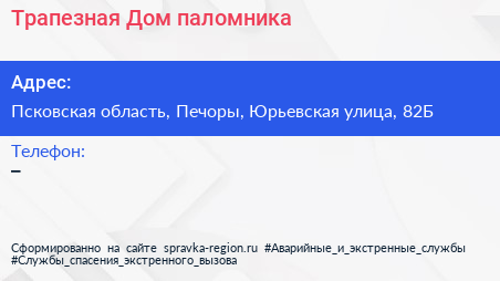 Трапезная, Дом паломника по адресу Псковская область, Печоры, Юрьевская улица, 82Б в дальнейшем Организация, размещена в следующих категориях: