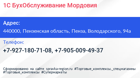 1С-БухОбслуживание. Мордовия по адресу 440000, Пензенская область, Пенза, Володарского, 94а в дальнейшем Организация, размещена в следующих категориях:
