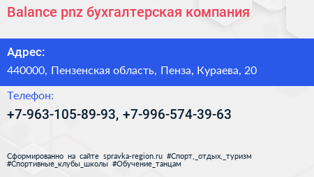 Balance.pnz, бухгалтерская компания по адресу 440000, Пензенская область, Пенза, Кураева, 20 в дальнейшем Организация, размещена в следующих категориях: