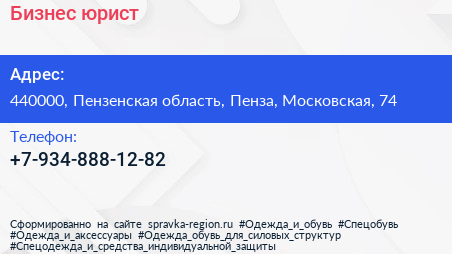 Бизнес-юрист по адресу 440000, Пензенская область, Пенза, Московская, 74 в дальнейшем Организация, размещена в следующих категориях: