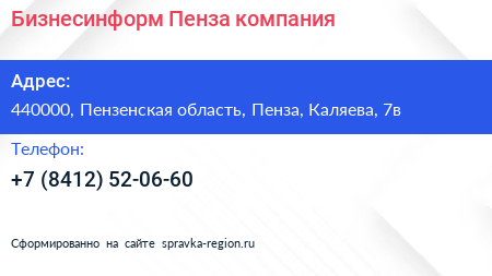 Бизнесинформ-Пенза, компания по адресу 440000, Пензенская область, Пенза, Каляева, 7в в дальнейшем Организация, размещена в следующих категориях: